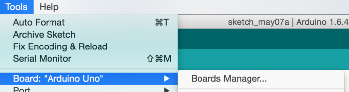 Now that you have added the appropriate URLs to the Arduino IDE preferences, you can open the Boards Manager by navigating to the Tools->Board menu.