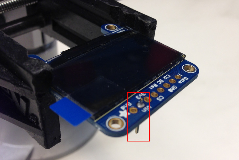 Start by soldering a header pin into the Vin on the 1.3" OLED breakout.