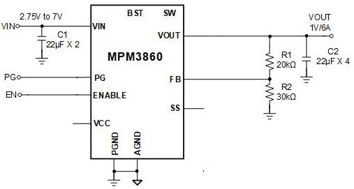 MPS’ MPM3860 1.2 MHz ultra-thin module can achieve 6 A of continuous output current over a wide input range with excellent load and line regulation